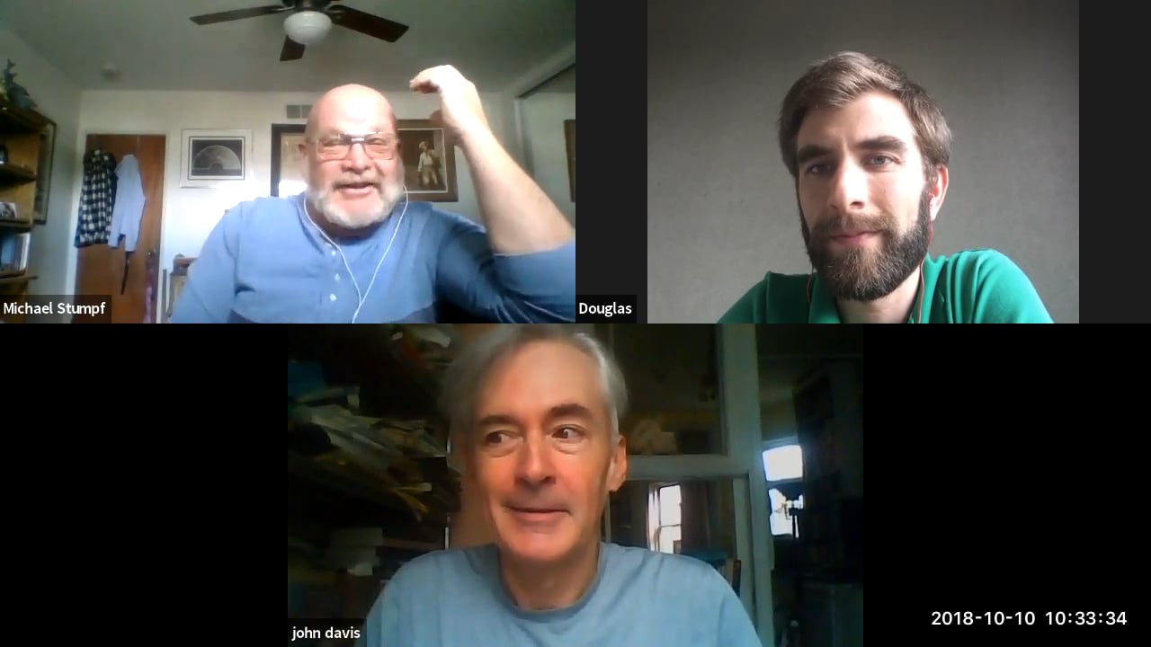 The conversation orients around recent reads from Karan Barad, Antonio Damasio, Erin Manning and John Durham Peters; the group discusses quantum and ocean waves, reflections vs diffractions; body as an instrument; homeostasis and maintenance of the body as a political measure; creating conscious culture; and out of body experiences. John Davis leads out a Clean Language session, asking Michael and Doug to hone in on one item in Michael Murphy’s “list of diffractions.” Micheal fine tunes his Clean Langauge skills.